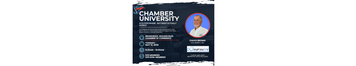 Please join us for Chamber University, a series of practical, hands-on workshops designed to help local business and individuals grow their skills and knowledge. In this practical, no‑hype session, Chuck Brown of Infinity breaks down how AI can truly support leaders and teams by acting as a smart, trusted assistant - not a replacement. Learn where AI delivers real value inside the systems you already use, see relatable real‑world examples, and hear how organizations can start small, stay safe, and gain a lasting competitive edge. If you want AI that actually helps you do your job, this session is for you.